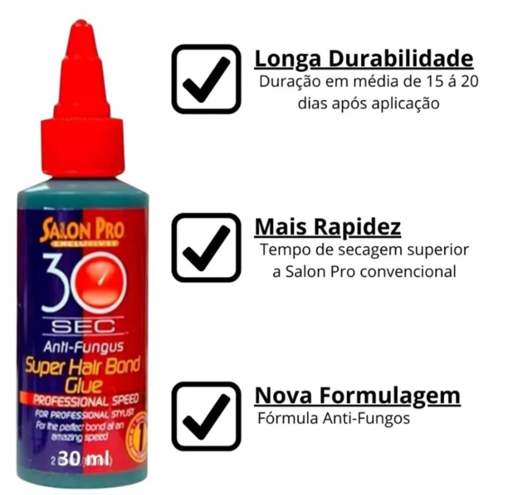 Para uma melhor aderência e durabilidade, misturar 01 gota da cola Salon Pro e 02 gotas da Cola Vivi.